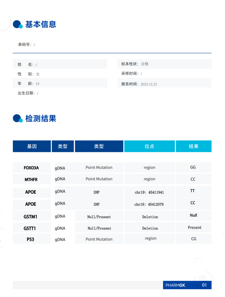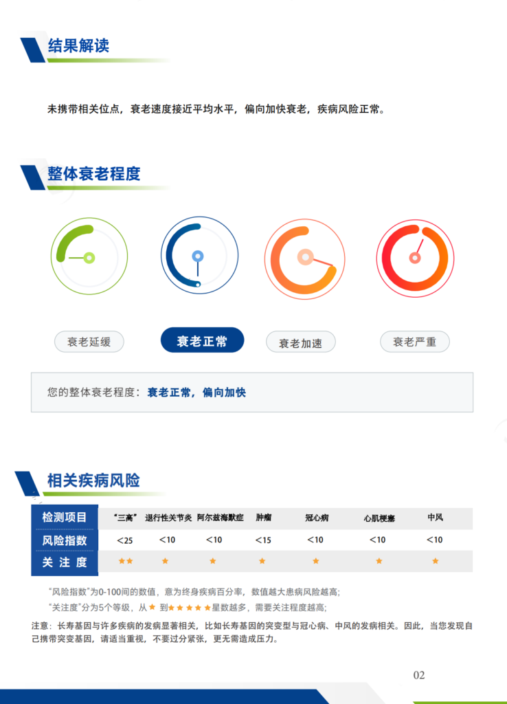 3.本页内容不构成对任何疾病的诊断、治疗或疗效承诺,也不能替代医师面对面诊疗意见。检测结果受个体差异、样本质量、实验流程、算法模型与生活方式等多因素影响,属于统计学与健康管理意义的参考信息。任何健康决策应结合个人病史、体检/临床检查结果及专业医师建议综合判断。
